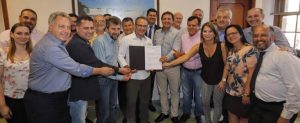 O prefeito Chico Brasileiro assinou um novo decreto para simplificar os procedimentos para obtenção de alvará. O presidente do Sindhotéis, Neuso Rafagnin, prestigiou a solenidade.