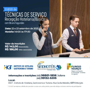 O Instituto de Hotelaria, Gastronomia e Turismo (IHGT) anuncia a realização do Curso de Técnicas de Serviço – Recepção Hotelaria/Básico, uma oportunidade única para quem