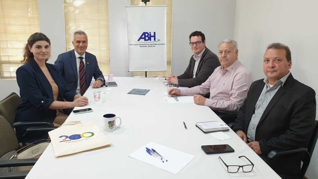 Representantes do Consulado dos Estados Unidos em São Paulo (SP) visitaram a ABIH Regional Oeste Paraná com o objetivo de estreitar parcerias e ampliar o atendimento aos cidadãos norte-americanos que visitam Foz do Iguaçu. O encontro ocorreu na sede da entidade, localizada no Jardim Central.