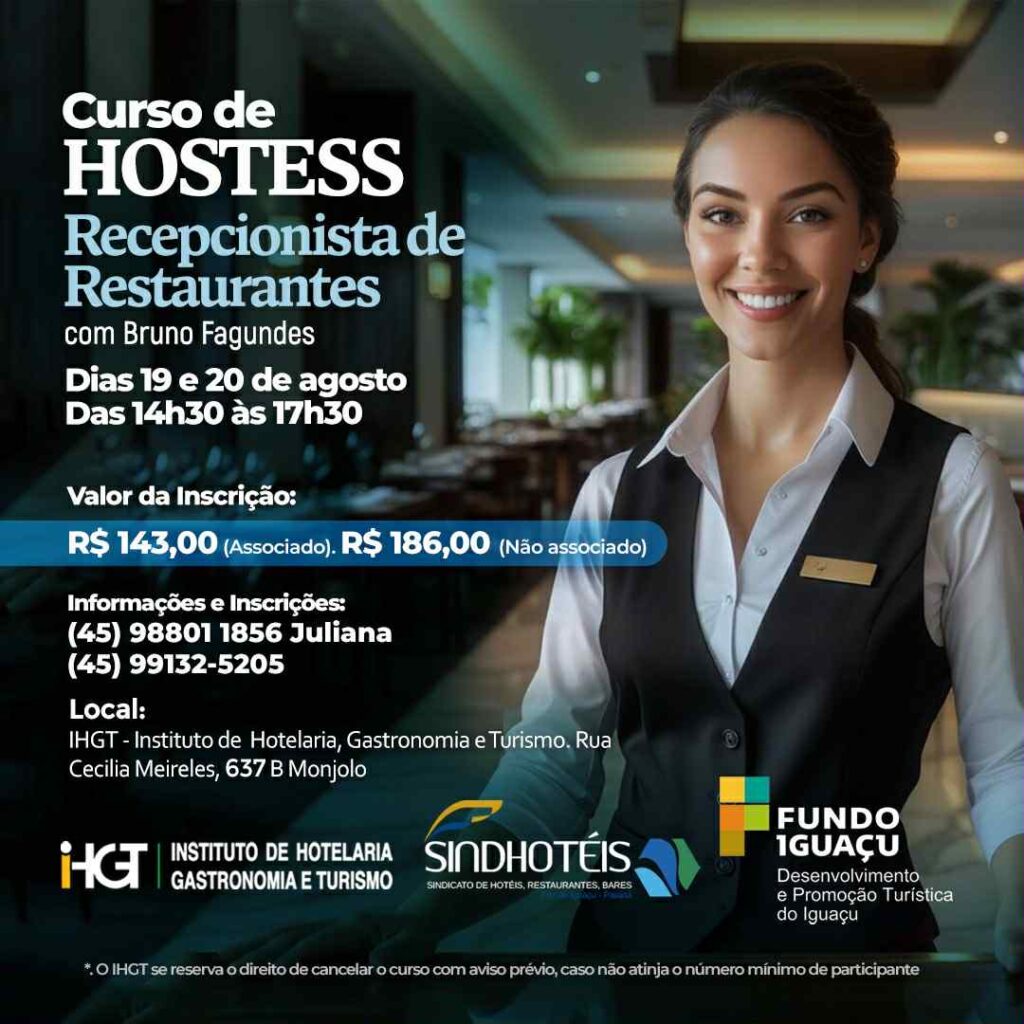Este curso é ideal para profissionais que desejam iniciar ou aprimorar sua atuação na área de hospitalidade, oferecendo uma base sólida em atendimento ao cliente e recepção. Qualifique-se para atuar como hostess em restaurantes, aprendendo técnicas modernas e práticas para proporcionar uma experiência excepcional aos clientes, promovendo satisfação e fidelização. Instrutor – Bruno Guilherme de Andrade – Bacharel em Hotelaria – UNIOESTE (2021), Mestrado em Turismo e Hotelaria – UNIVALI (trancado).