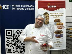 Reconhecendo a importância do café da manhã na experiência hoteleira, o Instituto de Hotelaria, Gastronomia e Turismo (IHGT), em parceria com a Adimix e Coferpan, realizou um curso intensivo de “Bolos e Cakes Variados: O Charme da Hotelaria!”. O treinamento, ministrado por Eder Silva, renomado Coordenador Técnico em Panificação e Confeitaria da Adimix, ocorreu nos dias 25 e 26 de junho, totalizando 6 horas de carga horária.